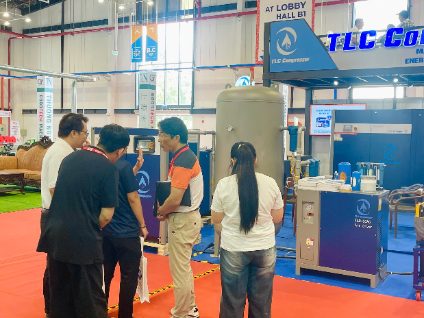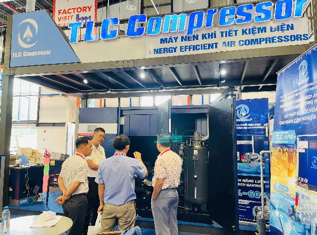 Tại gian hàng AB31, TLC sẽ trực tiếp trưng bày các dòng máy nén khí trục vít tiết kiệm điện thế hệ mới, phù hợp cho các nhà máy gỗ, nội thất, cơ khí, bao bì, dệt may, nhựa và nhiều ngành sản xuất công nghiệp khác.